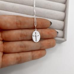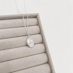 Colar pingente medalha dupla face Nsa. Sra. Desatadora de Nós e cruz 16mm corrente cadeadinho 45cm | Mya Prata