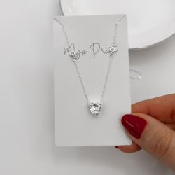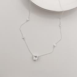 Colar entremeios zircônias redonda e coração 8mm 40+5cm | Mya Prata