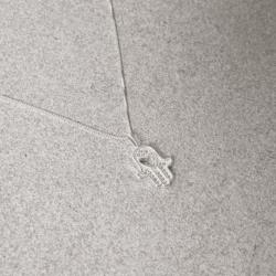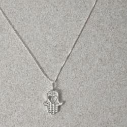 Colar pingente mão cravejada com coração vazado 15mm 45cm | Mya Prata