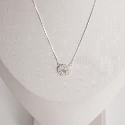 Descrição: Colar medalha zircônia coração com cravejado 14mm 45cm fabricado(a) em prata
