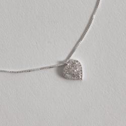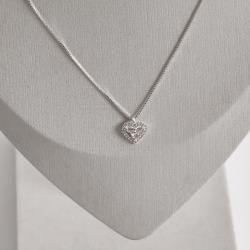 Colar pingente coração vazado com zircônias 10mm 45cm | Mya Prata