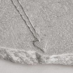 Colar pingente coração alongado cravejado 17mm 45cm | Mya Prata