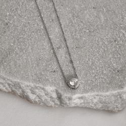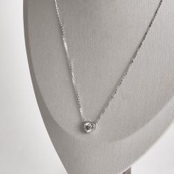 Colar pingente moissanite cristal 6.5mm com coração vazado cravejado corrente cadeadinho 45cm ródio | Mya Prata