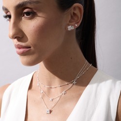 Colar pingente zircônia quadrada com cravejado 10mm 45cm | Mya Prata