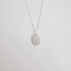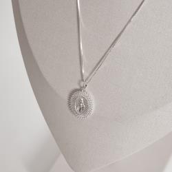 Colar pingente medalha Nsa. Sra. das Graças borda cravejada 21mm 45cm | Mya Prata