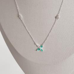Colar entremeios zircônias e flor cristal e turmalina 9mm corrente cadeado 40+5cm | Mya Prata