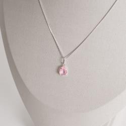 Colar pingente zircônia gota rosa 12mm 45cm | Mya Prata
