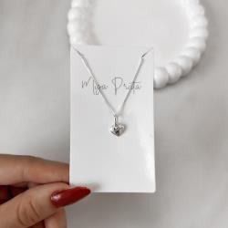 Colar pingente coração desenhado 8mm 40cm | Mya Prata