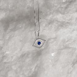 Colar pingente olho com zircônia azul 15mm 45cm | Mya Prata