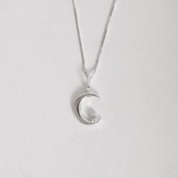 Descrição: Colar pingente lua com detalhe zircônia 14mm 45cm fabricado(a) em prata