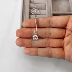 Colar pingente zircônia redonda 8mm 45cm | Mya Prata