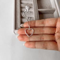 Colar pingente coração vazado 18mm 45cm | Mya Prata