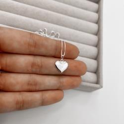 Colar pingente coração liso 12mm 40cm | Mya Prata