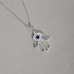Descrição: Colar pingente mão com zircônia 18mm 45cm fabricado(a) em prata