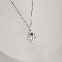 Colar pingente mão com zircônia 18mm 45cm | Mya Prata