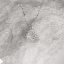 Colar pingente medalha coração com detalhes 18mm 45cm | Mya Prata