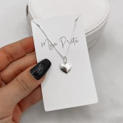 Colar pingente coração facetado 11mm 45cm | Mya Prata