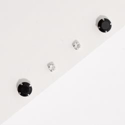 Dupla zircônias redonda cristal 3mm e ônix 6mm | Mya Prata