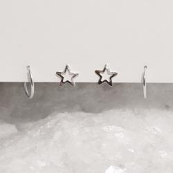 Dupla estrela vazada 8mm e argola 12mm | Mya Prata