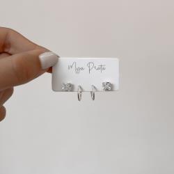 Dupla zircônia quadrada 6mm e argola 12mm | Mya Prata