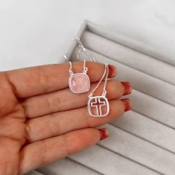 Escapulário cruz e pedra quartzo rosa v15 60cm | Mya Prata