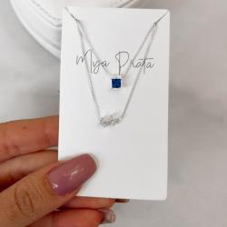 Escapulário signo Sagitário cravejado passante e zircônia quadrada azul escuro 60cm | Mya Prata