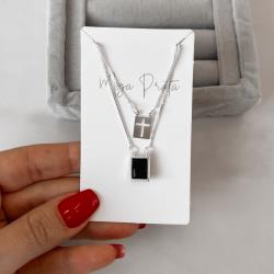 Escapulário placa cruz vazada e zircônia ônix v15 60cm | Mya Prata