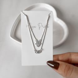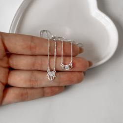 Escapulário mão e olho cravejados v15 60cm | Mya Prata
