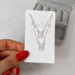 Escapulário medalhas cruz e Espírito Santo cravejados v15 60cm | Mya Prata