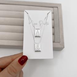Escapulário medalhas Nsa. Sra. Aparecida e Sagrado coração verso Salmos passante v15 60cm | Mya Prata