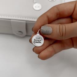 Pingente medalha ore, espere, confie resina 15mm | Mya Prata