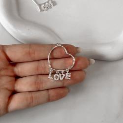 Pingente coração vazado 26mm com pingentes love | Mya Prata