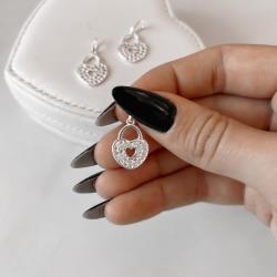 Pingente cadeado coração cravejado 16mm | Mya Prata