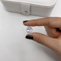 Pingente zircônia oval azul claro com cravejado 15mm | Mya Prata