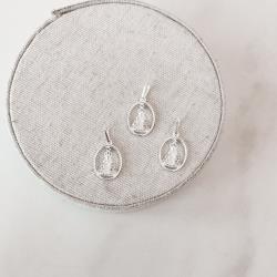 Pingente Nsa. Sra. Aparecida oval cravejada 14mm | Mya Prata