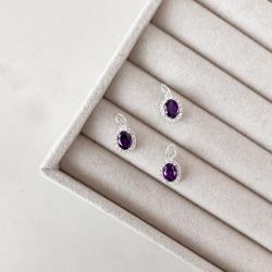 Pingente zircônia oval ametista com cravejado 10mm | Mya Prata