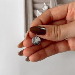 Pingente medalha letra A cravejada 15mm | Mya Prata