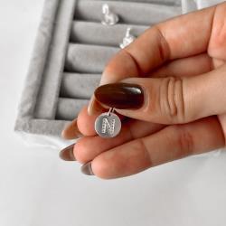 Pingente medalha letra N cravejada 15mm | Mya Prata