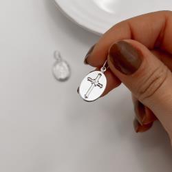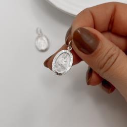 Pingente medalha dupla face São Benedito e cruz 16mm | Mya Prata
