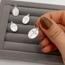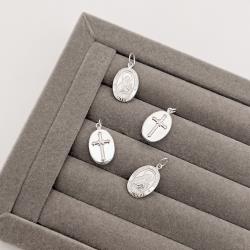 Pingente medalha dupla face Santa Terezinha e cruz 16mm | Mya Prata