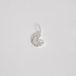 Descrição: Pingente lua resina com cravejado 12mm fabricado(a) em prata