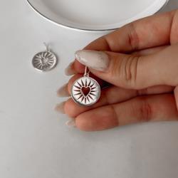 Pingente medalha coração com detalhes 18mm | Mya Prata