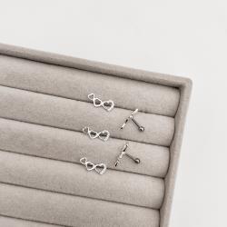 Piercing haste 3 corações vazados detalhe cravejado direito | Mya Prata