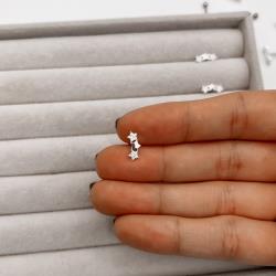 Piercing haste estrelas lisa e cravejada 11mm | Mya Prata