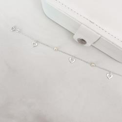 Pulseira entremeio pérola com pingentes coração vazado | Mya Prata