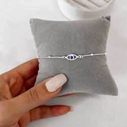 Pulseira entremeios olho grego 12mm com bolas | Mya Prata