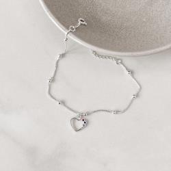 Pulseira pingente coração vazado detalhe cravejado colorido 11mm com bolas | Mya Prata