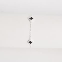 Pulseira entremeios trevos ônix borda cravejada 7mm | Mya Prata