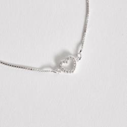 Pulseira entremeio coração vazado cravejado 7mm v15 15,5cm com alongadora | Mya Prata