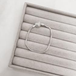Pulseira para berloques 2.4 fecho coração cravejado | Mya Prata